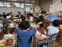 担任の先生と栄養教諭の先生が、子どもたちの中に入って、アドバイス・・・