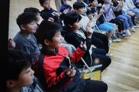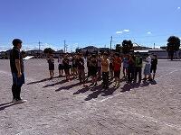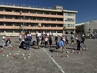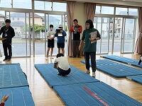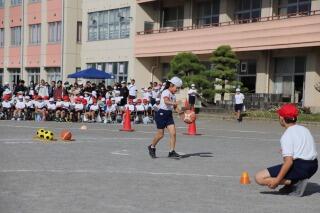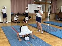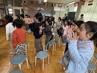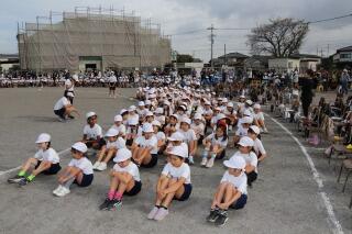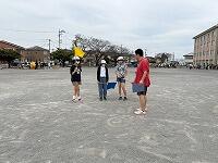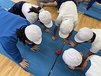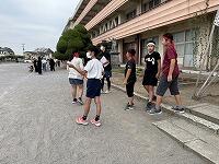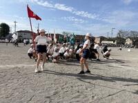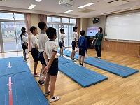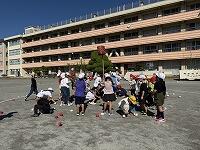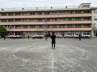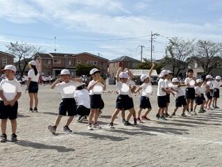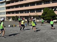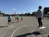 体育館が、工事中のため利用できないので、校庭で短時間で活動したり、多目的室に集まって動きの確認をしたり、上手に時間と場所を使い分けて取り組み始めましたよ