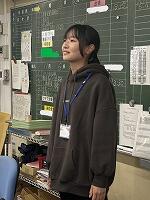 本校の卒業生で、現在、國學院大學 人間開発学部 2年生の学生さんが、「教職ボランティア」として、10日(水)から6日間本校で体験しながら学んでいただきました。来年度は、教育実習に来る予定で、教師を目指しているそうです
