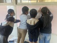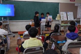 今日を迎えるまでに、昼休みの遊びたい気持ちをいじめを防止したいというやる気に変え、「何を伝えたいか」「どのような資料を準備するか」など、事前準備も頑張る代表児童の3人