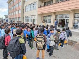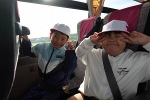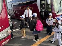 6年生が、小学校最後の校外学習に出かけました朝早い集合時刻だったので、まだ真ん丸なお月様が出ているころに目覚めて準備してきた子どもたち。一段と冷え込んだ朝・・・登校したときは、元気いっぱいの子や、眠そうな目をこすっている子もいましたが・・・堂々と出発式を行って、予定どおり貸し切りバス4台で出発しました