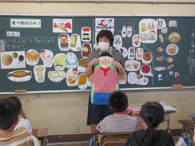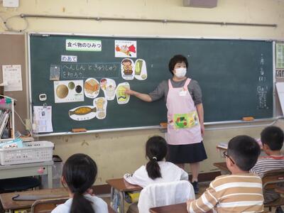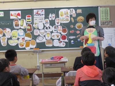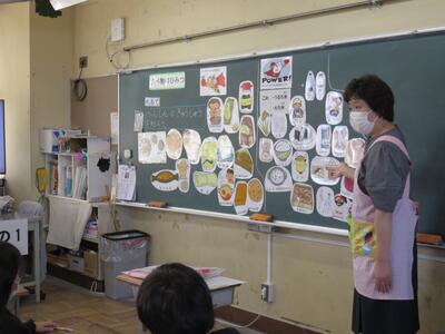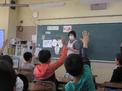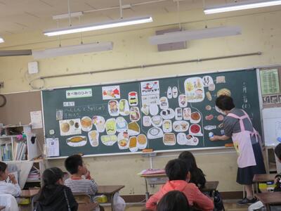 この後、4時間目は、栄養教諭の先生とティーム・ティーチングで授業を行い、献立の材料等も考えて、献立を完成させました。