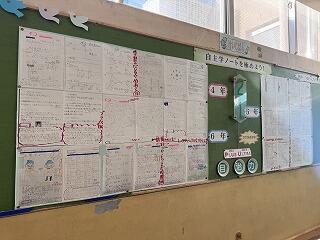 これは、休みの日や放課後に、学習指導主任の先生が中心となって、掲示してくださっているんですよ