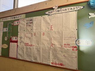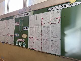 「今日、わかったこと、気付いたことはもちろん、友達からのアドバイスでもいいし、友達にしたアドバイスでもいいですよ。」と、担任の先生から、『振り返り』の視点が提示されたので、子どもたちは考えやすくなったようで、集中して書いていました。
