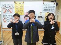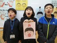 1年生の教室での「あいうべ体操」の様子朝の会、帰りの会でやっているクラスが多く、元気な「あいうべー」の声が聞こえてきます。