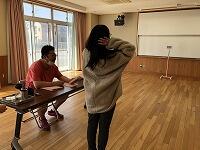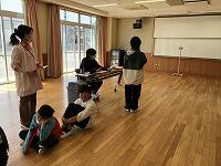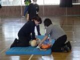 まず、意識の確認、119番通報、AEDの手配の仕方を練習しました。次に、呼吸を確認してから胸骨圧迫による心臓マッサージを練習しました。