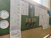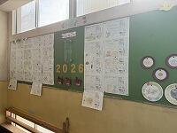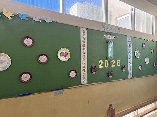 午年(うまどし)らしく、飛び出す「うま」の掲示物に、子どもたちが描いた「新年の抱負」