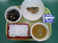 キラキラごはん ぎゅうにゅう さつまいもいりごもくごはんのぐ さんまのうめに とんじる