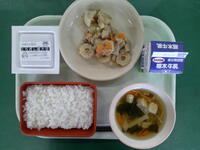 キラキラごはん ぎゅうにゅう コロッケ ゆでやさいわふうサラダ いなかじる