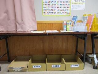 ◎大宮北小では、たくさんの種類の新聞を学校にストックしておき、自由に手に取って、学校で新聞が読めるコーナーを、現在、パソコン室に整備中です。