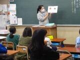 ボランティアさんが話し始めると、すっと静かに聴く構えができています。最後まで集中して聴きながら、おもしろい場面では笑ったり、話の先を考えたりしている様子が見られました。