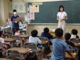 1年生が、学級活動で担任と保健室の先生による「からだをきれいに」の学習をしています。