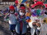 校庭では、自分の作品を手に空を飛ばしたり、友達の作品と追いかけっこをしたりして楽しく遊びました。