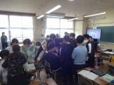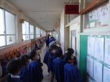 まず、校内を見学しました。掲示してある作品を見る度に、「すごい。」「上手。」と驚いていました。