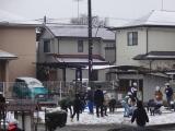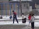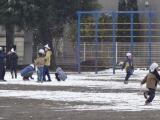 休み時間になると、雪の降る校庭に走り出してきました。わずかでも積もったところを見付けてかけよっていました。