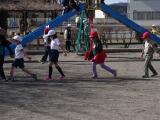 チームごとに事前に決めてあった遊びをしました。ドッジボールや追いかけっこなど、なかよく遊ぶことができました。