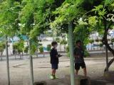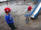 雨がやっと止みました。風の影響で休止のアトラクションもありますが、子どもたちなりに活動を楽しんでいます。