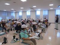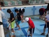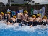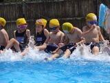 1年生が、小学校のプールに入るのは2回目です。まだ、着替えや準備体操など慣れていないことが多く、しっかりと時間をかけて指導しています。