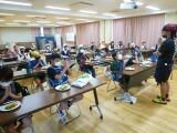 見学の後の質問コーナーでは、「どんなテストがありますか。」「給食は、どんなものが出ますか。」など子どもらしい質問がたくさんありました。