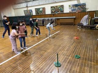 次に、みんなでレクリエーションをしました。今年は、代表委員会で話し合って、わくわくバスケットをしました。自己紹介を兼ねて、お互いのことをもっと知るための工夫がされたゲームです。