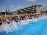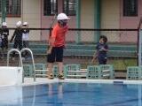 それでも、シャワーを浴びて、プールサイドにやってくると、うれしくて興奮気味です。プールサイドに腰掛けて、体に水をかけたり、バタ足の練習をしたりしました。友達と水をかけ合ってすごく楽しそうでした。