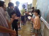 ゲーム終了後に、5年生から6年生にプレゼントを渡しました。6年生からのお礼の言葉を聞いて大きな拍手がわき起こりました。