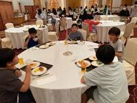 夕飯を美味しく頂いた後、バスでホテルに着きました。インターコンチネンタルホテルの豪華さと、一般のお客様の多さに緊張気味でした。子どもたちが司会を務めた入館式をして、部屋に向かいました。