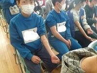 テレビ画面を見ながら、薬物乱用に関するクイズに挑戦しました。全員で薬物乱用の知識について確認できました。