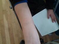 消毒用エタノールを含ませた絆創膏を腕に貼り、7分後にはがして肌の色の変化を見ました。