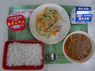 〈メニュー〉ごはん 牛乳 ポークカレー 野菜ソテー ヨーグルト