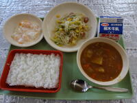 ごはん ぎゅうにゅう ドライカレーのぐ フライドポテト やさいスープ
