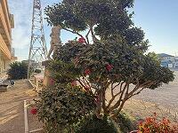 校舎前の植え込みに「さざんか」のつぼみがたくさん膨らんで、花も咲いていました。だんだん、鮮やかなピンクの花がたくさん開いてきそうです。