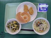 こめこパン ぎゅうにゅう ちゃんぽんのぐ チキンナゲット くきわかめサラダ