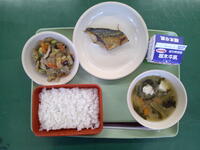 今日は、ふるさとメニューです。栃木市産のさといもを使った「にくみそに」と、だいこんやしいたけを使った「けんちんじる」が出ています。地元でとれた野菜などは、とても新鮮で栄養もたくさん含んでいます。地域の生産者の方に感謝して、味わっていただきましょう。
