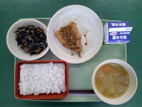 ひじきは、日本で縄文時代から食べられてきた海草です。私たちに不足しがちなカルシウムや鉄分を多く含んでいます。ひじきは、成長期のみなさんに食べて欲しい食品です。今日は、ひじきごはんの具にしました。ごはんといっしょに食べましょう。