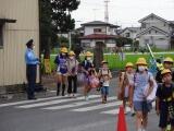 1年生は、下校時に日傘を差したり、マスクをはずしたりして自分なりに予防をして帰りました。職員が地域巡回を行い、安全の確保に努めました。