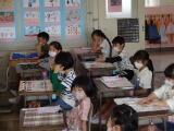 4年生は、校庭での体育と国語の授業でした。全力で走りきり、自分のタイムを先生に聞こうとする意欲が見られました。漢字の組み立てについて、自分の知っている漢字と結び付けながら考えている姿が見られました。