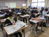 5年生は、学級によって内容は異なる国語の授業でした。春の風景をイメージして、自分の中にある言葉を引き出していました。また、漢字の成り立ちについて、動画教材を見ながら楽しく学んでいました。