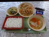 ごはん ぎゅうにゅう ぶたにくのスタミナいため いそかあえ だいこんのみそしる