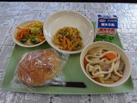 ミニアップルパン ぎゅうにゅう けんちんうどん やさいかきあげ わふうサラダ