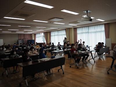 参加者は、4~6年生の各クラス代表委員、計画委員、各委員会の委員長です。
