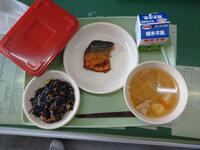 【かみかみメニュー】ごはん ぎゅうにゅう ひじきごはんのぐ さばのスタミナやき とんじる