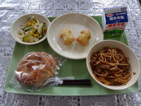 ミニくろパン ぎゅうにゅう トマトとツナのスパゲティー オムレツ イタリアンサラダ