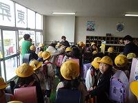 教室での集会が終わった地区から、校庭に集合して新しい班で分団ごとに下校しました。