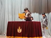 次に、1・3・5年生の児童代表が、1年間でがんばったこと、思い出に残ったこと、進級してがんばりたいことの作文発表をして、大きな拍手を贈られました。