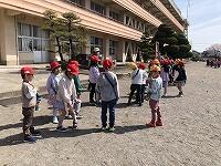 その後、給食室から火災が発生した想定で、校庭への避難をしました