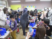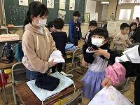 さらに、大宮女性会の皆様が来校され、新入生用のランドセルカバーと手縫いのぞうきんを贈呈いただきました。女性会の皆様には、登下校の見守りもしていただき、本当にありがとうございます。