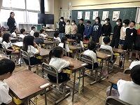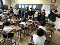業間の時間にお別れ式の練習をしました。今回は、6年生の入場を1~4年生が出迎えるところから始めました。