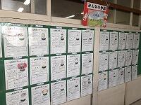 昇降口前に掲示された名簿により、新しい学級の発表です