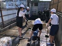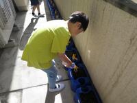 最後に、使った清掃用具をきれいに洗って干して片付けまでしっかり行う、立派な6年生です